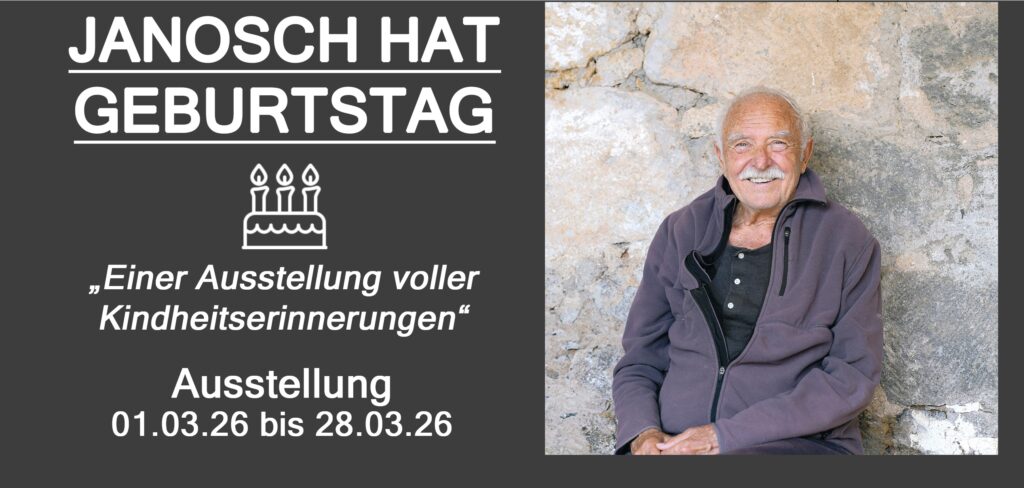 Janosch feiert am 11. März seinen 85. Geburtstag. Das Jubiläumsjahr bietet eine Reihe von Veranstaltungen in Deutschland, Österreich und der Schweiz. Ausstellungen, Kunstmessen, Theateraufführungen und Buchveröffentlichungen begleiten den großen Künstler und Autor 2016. Janosch selbst wird im Juni bei einigen Ausstellungseröffnungen dabei sein. Alle Termine und Ausstellungsorte finden Sie in Kürze in unserer Ausstellungsrubrik.